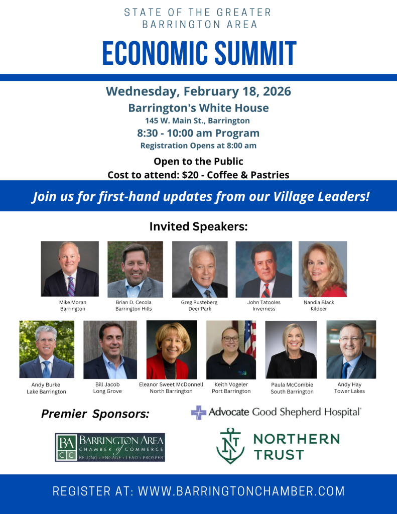 Presented by the Barrington Area Chamber of Commerce, Barrington 220, and the Barrington Area Council of Governments, with support from Northern Trust and Advocate Good Shepherd Hospital.